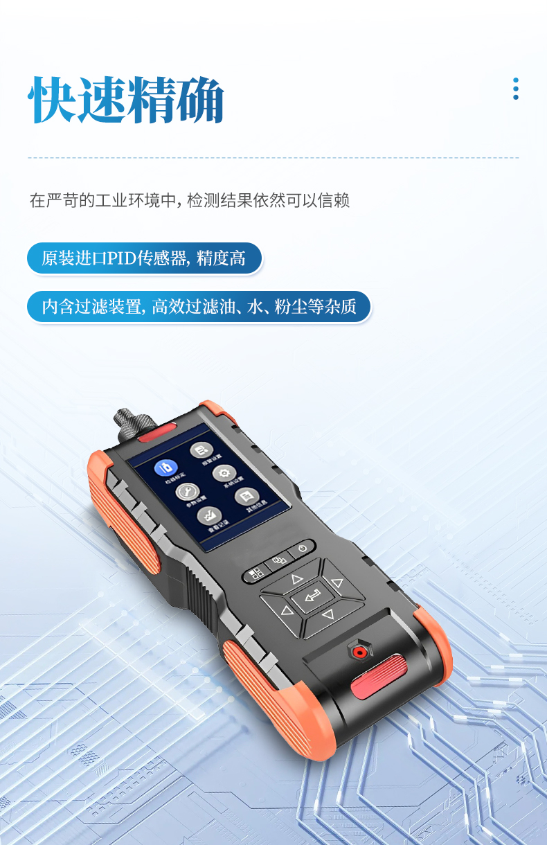手持式VOC檢測儀主要用于檢測車間的VOC濃度、廠界的VOC濃度、固定污染源排放VOC濃度、安全事故應急監測、廢氣排放濃度達標快速檢測。