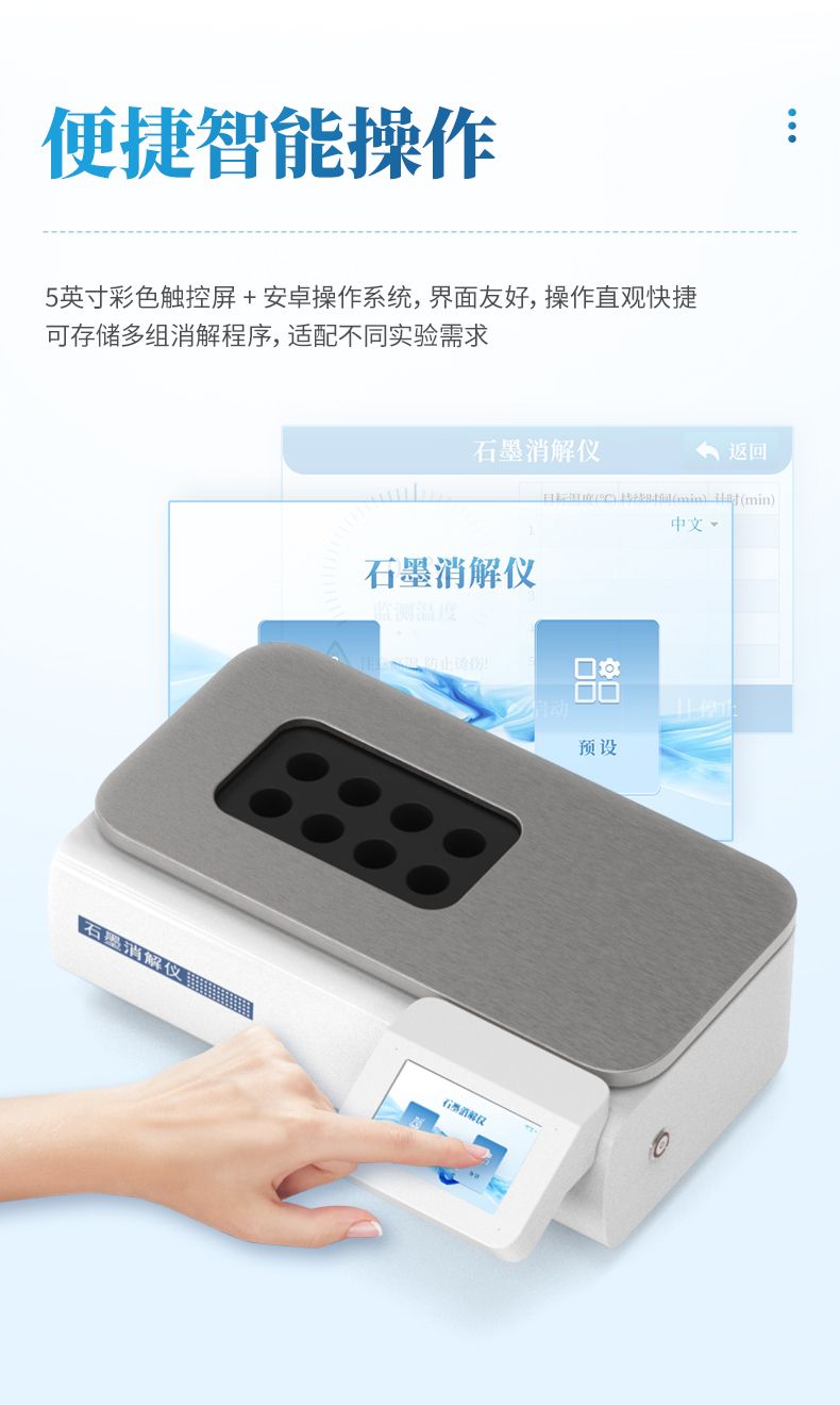本石墨消解儀是替代傳統(tǒng)電熱板、電熱爐的理想選擇,同時(shí)儀器采用經(jīng)典的30 mm孔徑設(shè)計(jì),完美兼容市場(chǎng)主流的50 mL、100 mL消解管,是實(shí)驗(yàn)室值得信賴的得力助手。