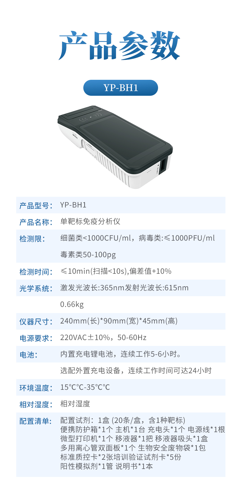 便攜防護(hù)箱*1個 主機(jī)*1臺 充電頭*1個 電源線*1根 微型打印機(jī)*1個 移液器*1把 移液器吸頭*1盒 多用離心管雙面板*1個 生物安全廢物袋*1包 標(biāo)準(zhǔn)質(zhì)控卡*2張培訓(xùn)驗(yàn)證試劑卡*5份 陽性模擬劑*1管 說明書*1本
