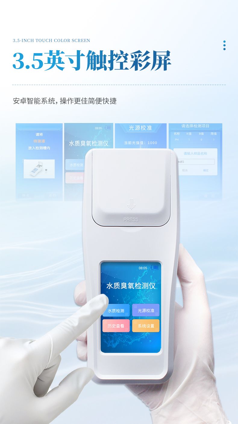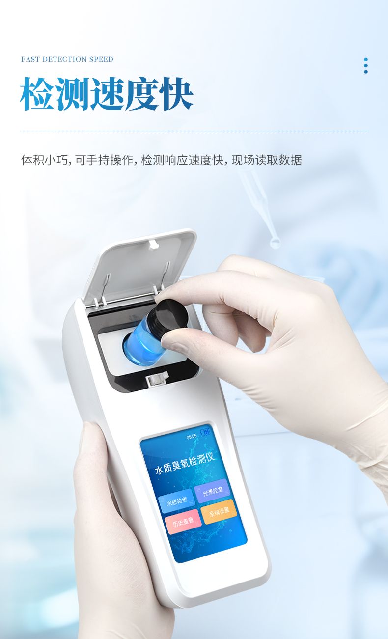 便攜式水質(zhì)臭氧檢測儀器配合快速顯色檢測試劑,可“快速、簡單、準(zhǔn)確、穩(wěn)定”進行測量,擁有精美的外觀造型,簡單的操作界面,準(zhǔn)確的檢測系統(tǒng),幫助用戶獲得精細的數(shù)據(jù),可更準(zhǔn)確、有效的分析水體狀況,提前預(yù)防,及時避免損失。