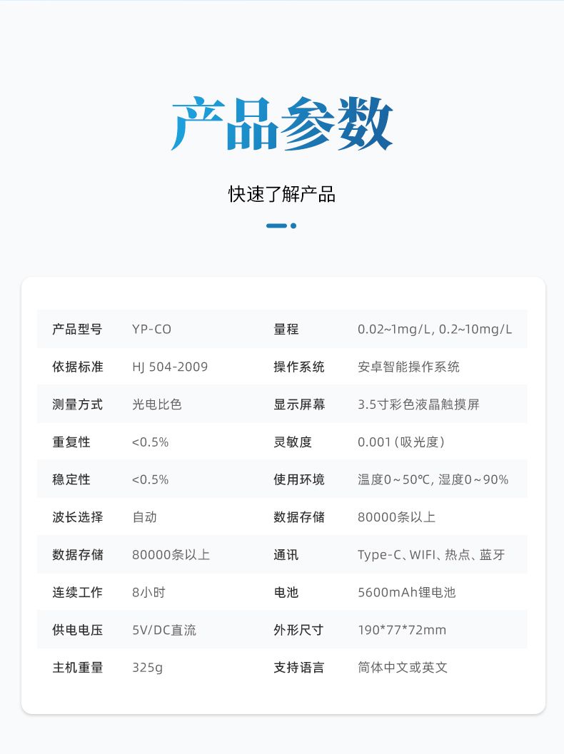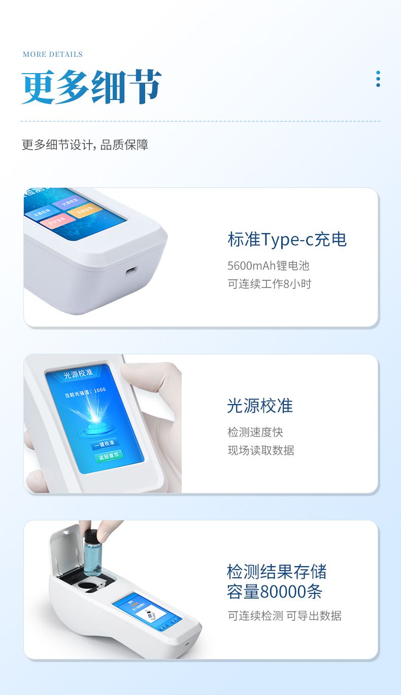⑥便攜式體積小,重量輕,方便戶外檢測;