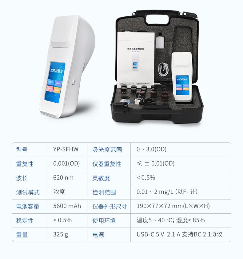 手持式水質(zhì)氟化物檢測(cè)儀是一款基于氟試劑分光光度法開發(fā)的便攜式專業(yè)設(shè)備,專為快速、準(zhǔn)確評(píng)估水質(zhì)安全而設(shè)計(jì)。