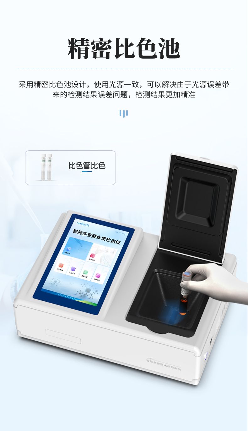 3.采用精密比色池設計,使用光源一致,可以解決由于光源誤差帶來的檢測結果誤差問題,檢測結果更加精準;