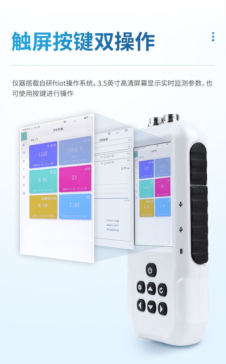 便攜式多參數(shù)水質測定儀是一款電極法水質分析儀器,采用全數(shù)字電極檢測,可檢測水質的水中油參數(shù)。儀器搭載自研ftiot操作系統(tǒng),操作簡單、性能穩(wěn)定、測量準確、檢測范圍廣,內(nèi)置高容量充電鋰電池,便于用戶在野外、實驗室隨時進行水質檢測工作。
