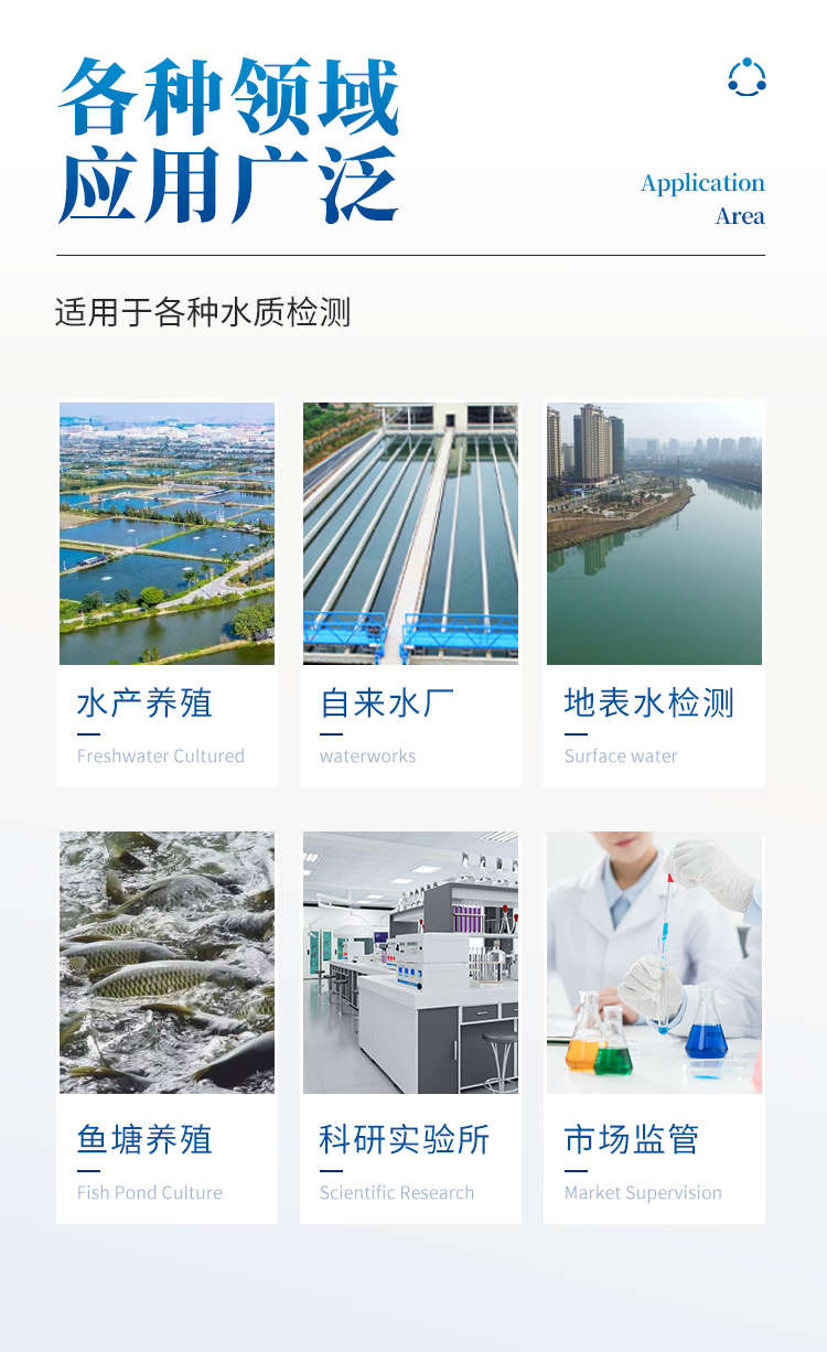 廣泛應用于水產養殖、地表水、科研高校等行業和領域水中藍綠藻/葉綠素的現場便攜式監測。