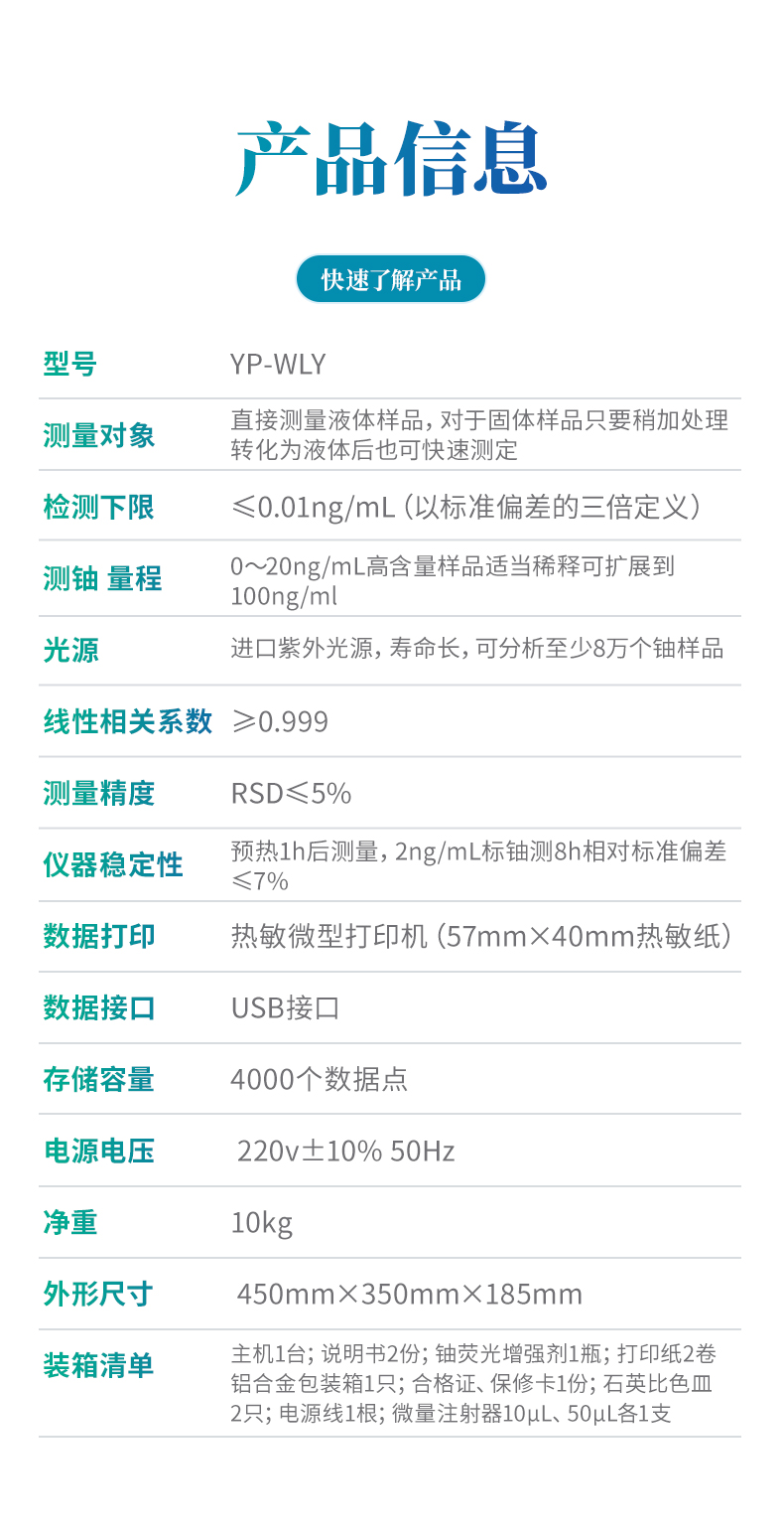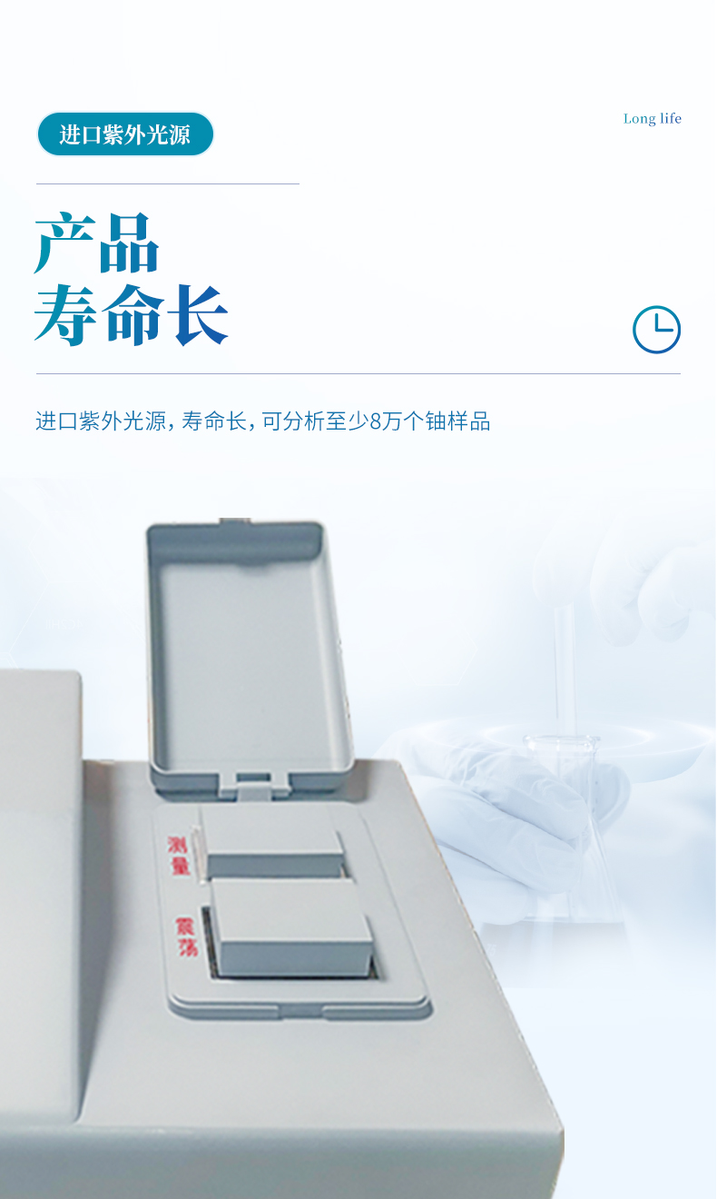 進(jìn)口紫外光源,壽命長,可分析至少8萬個(gè)鈾樣品
