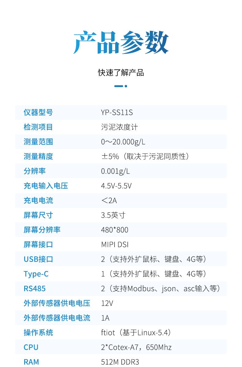 7污泥濃度0~20.000g/L散射光法±5%(取決于污泥同質性)0.001g/L?