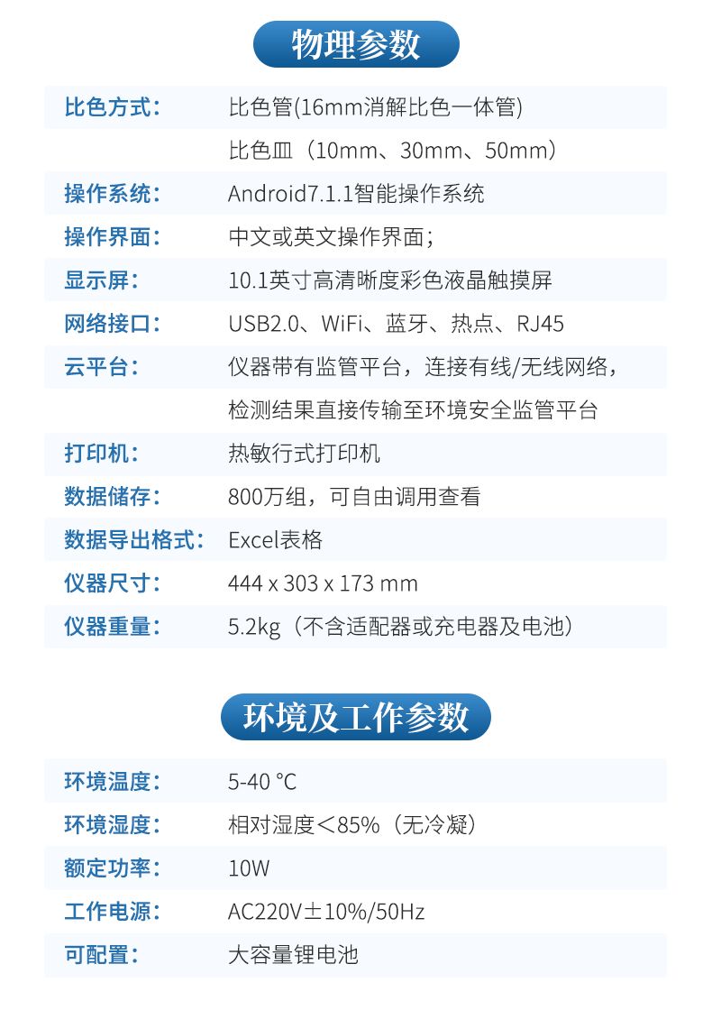 云平臺:儀器帶有監管平臺,連接有線/無線網絡,檢測結果直接傳輸至環境安全監管平臺。