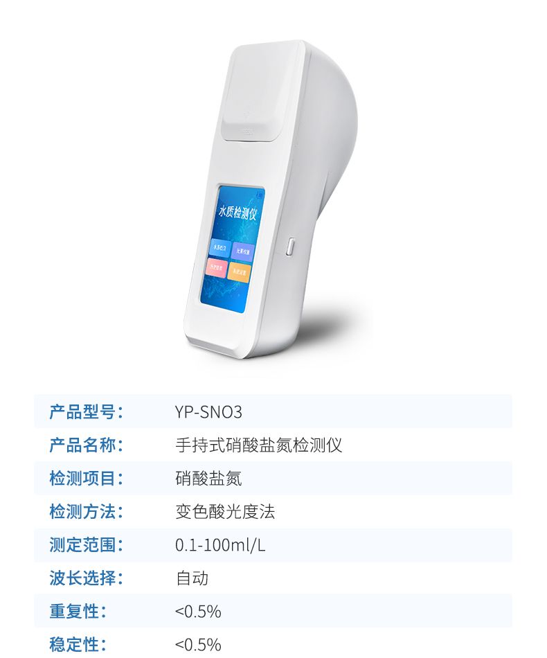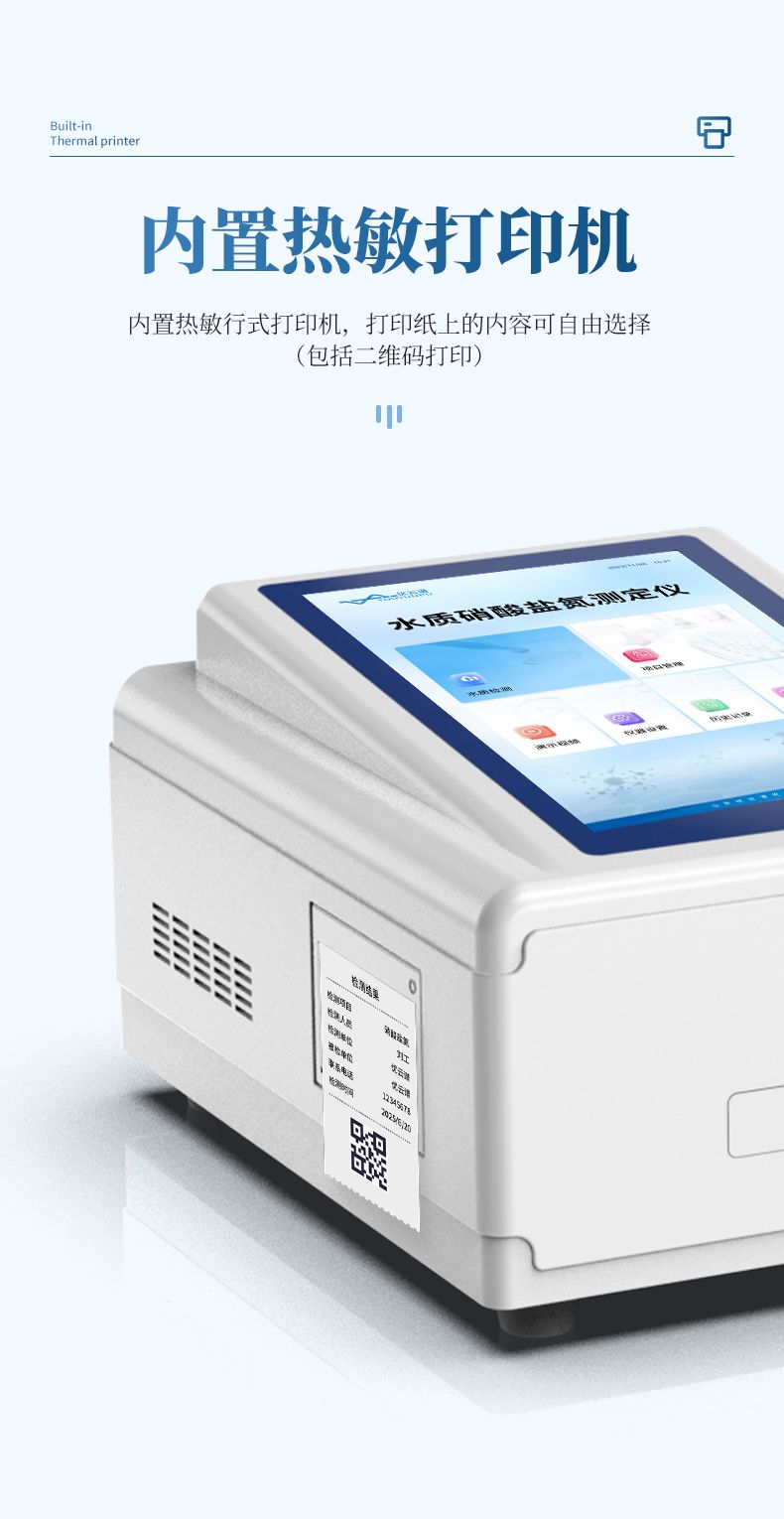 硝酸鹽氮檢測儀是參考方法《變色酸光度法》研發設計制造,主要檢測水質硝酸鹽氮濃度指標,兼具智能數據分析功能,圖表、列表顯示數據,分析一目了然;高清晰度彩色液晶觸摸顯示屏,Android智能操作系統,中文顯示界面,中英文鍵盤,人性化操作,使用更簡單。