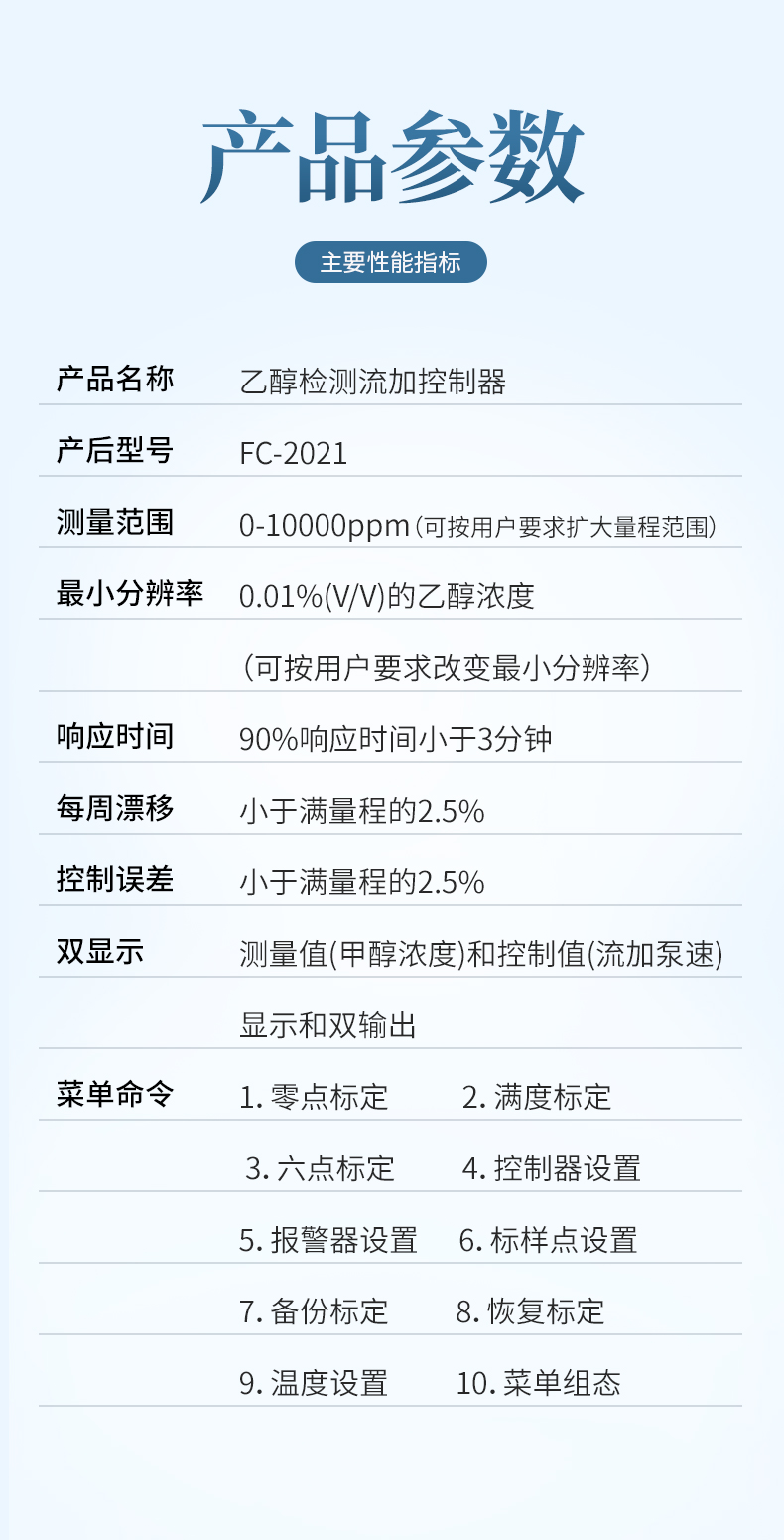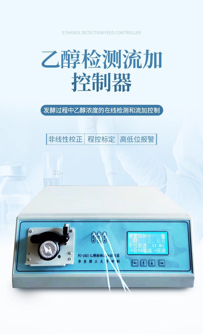 FC2021型乙醇檢測流加控制器是由單片微型計算機(jī)控制的智能化儀表。主要用于發(fā)酵過程中乙醇濃度的在線檢測和流加控制。