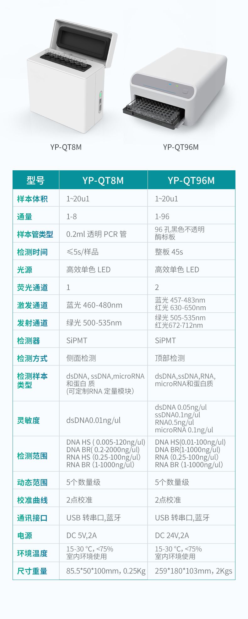 YP-QT8熒光計是款非常小巧的微量核酸定量及蛋白質濃度檢測設備,儀器采用熒光檢測原理,僅需1~20ul樣品即可獲得準確的檢測結果。檢測靈敏度高,檢測范圍廣,檢測時間短,是科研實驗室檢測低濃度核酸,蛋白質的完美工具,廣泛應用于NGS文庫構建中的DNA含量測定,PCR實驗中核酸濃度檢測等。