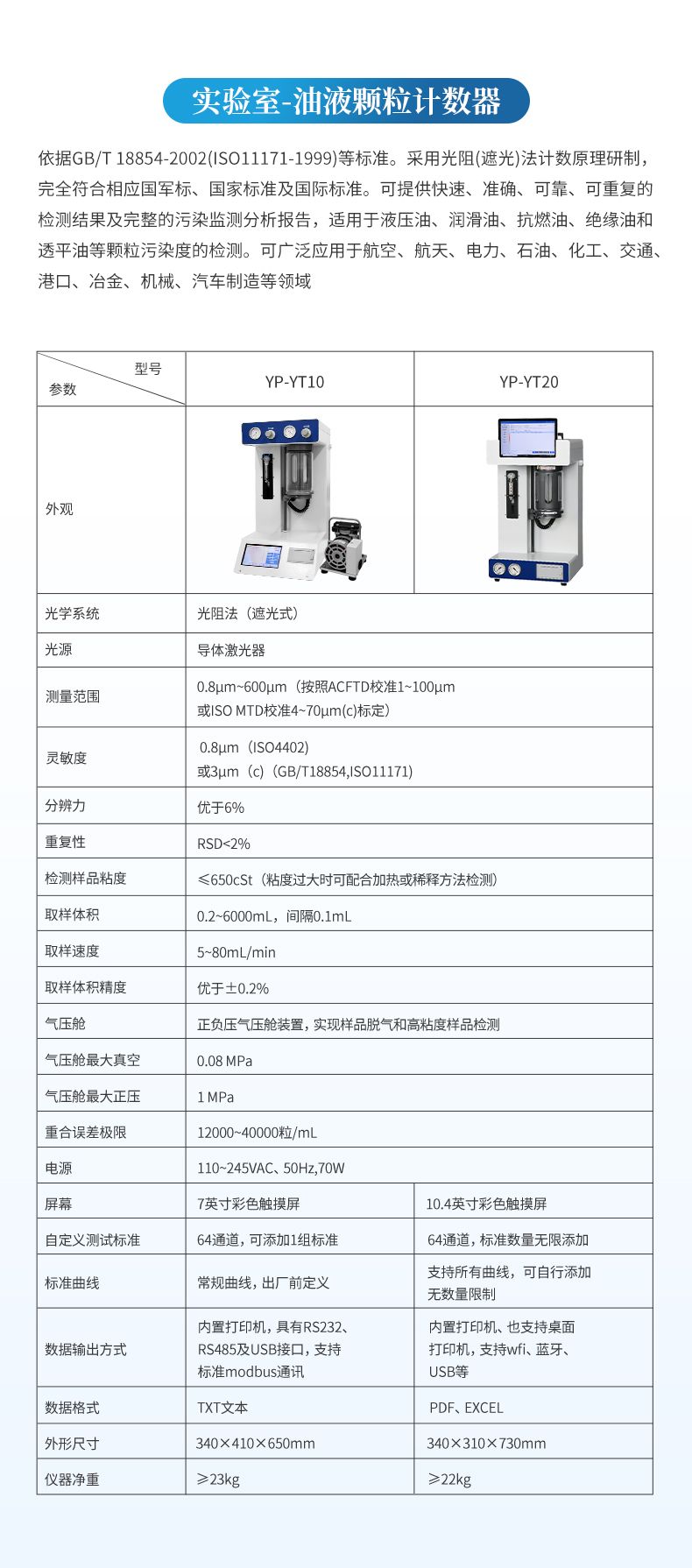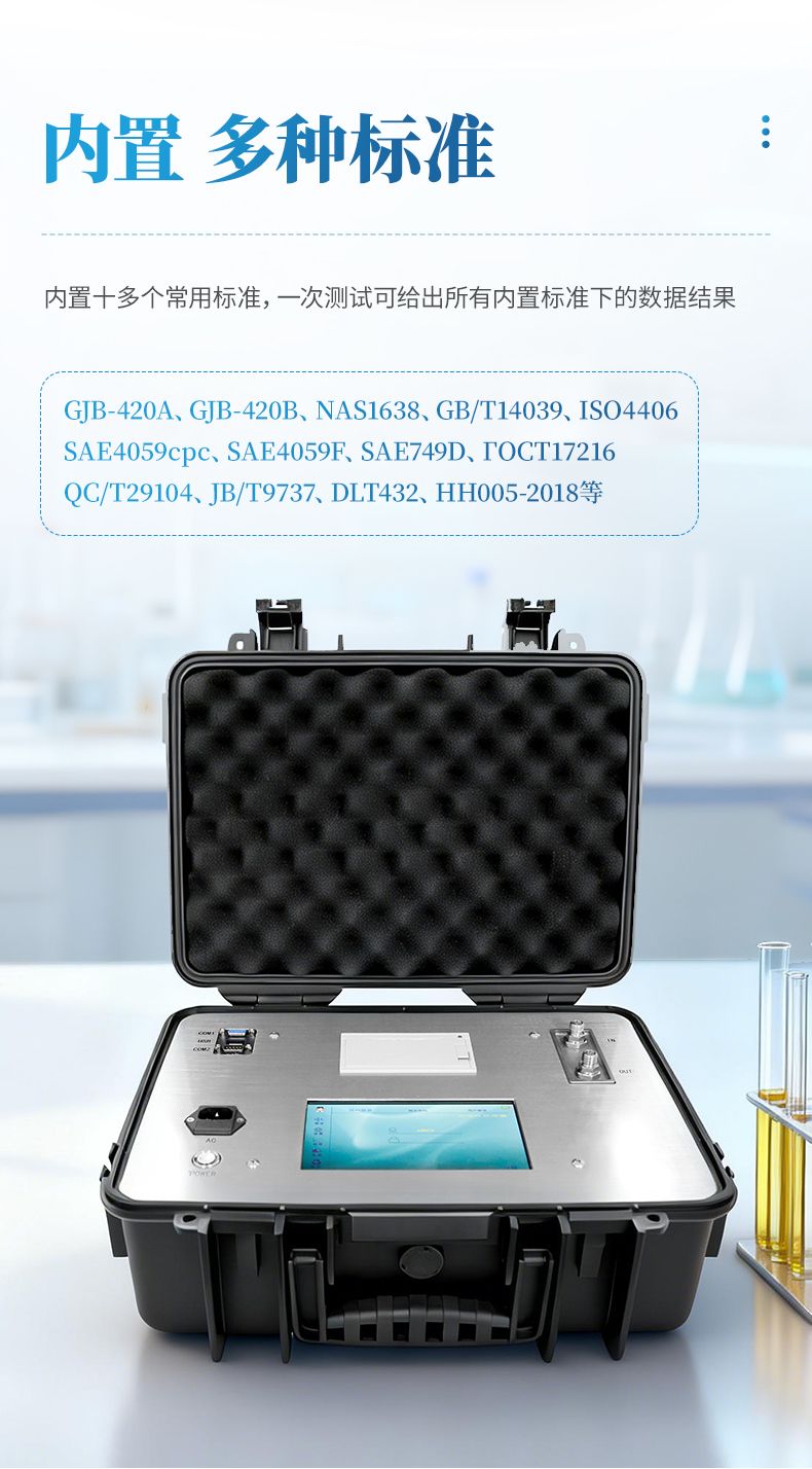 內(nèi)置ISO4406、NAS1638、SAE4059、GJB420A、GJB420B、ГOCT17216、GB/T14039等顆粒污染度等級標(biāo)準(zhǔn)