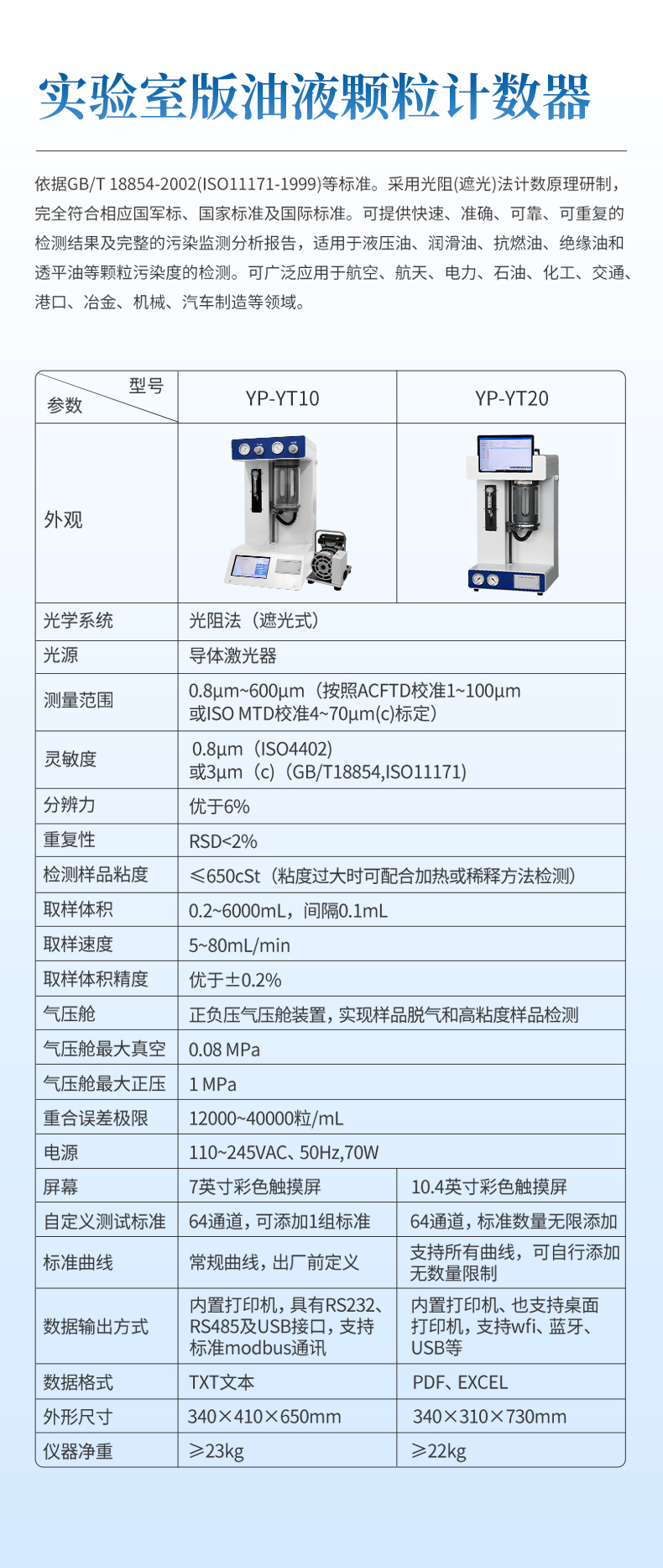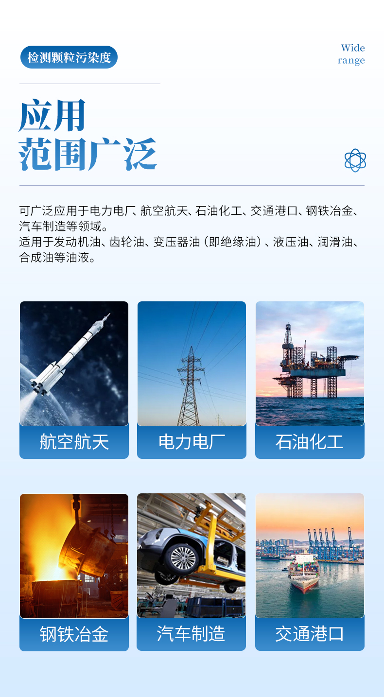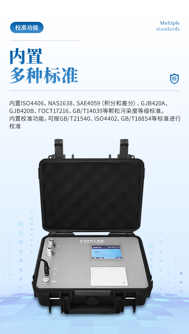 ■內(nèi)置GJB-420A、GJB-420B、NAS1638、ISO4406、SAE4059E、AS4059F和ГOCT17216等多個常用標(biāo)準(zhǔn),支持自定義標(biāo)準(zhǔn)測試,并可根據(jù)客戶需求設(shè)置所需標(biāo)準(zhǔn)