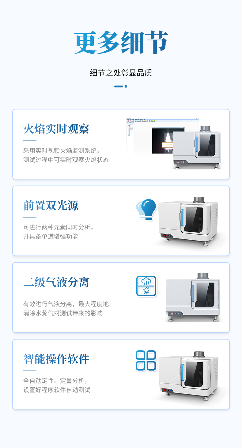 可進行兩種元素同時分析,并具備單道增強功能,顯著提高元素靈敏度和降低元素檢出限。光源更換方便、快捷。