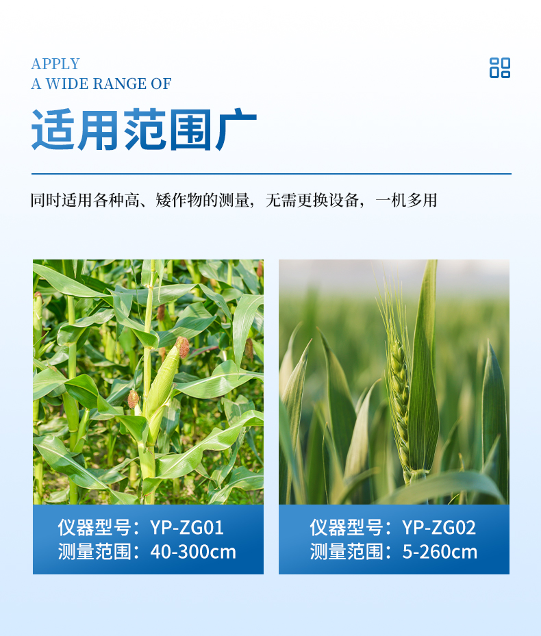 2.適用范圍廣-可同時適用各種高、矮作物的測量,無需更換設備,一機多用