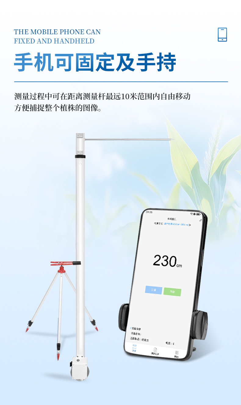 5.靈活性強 - 手機可以固定或者手持操作,測量過程中可在距離測量桿最遠10米范圍內自由移動,方便捕捉整個植株的圖像。