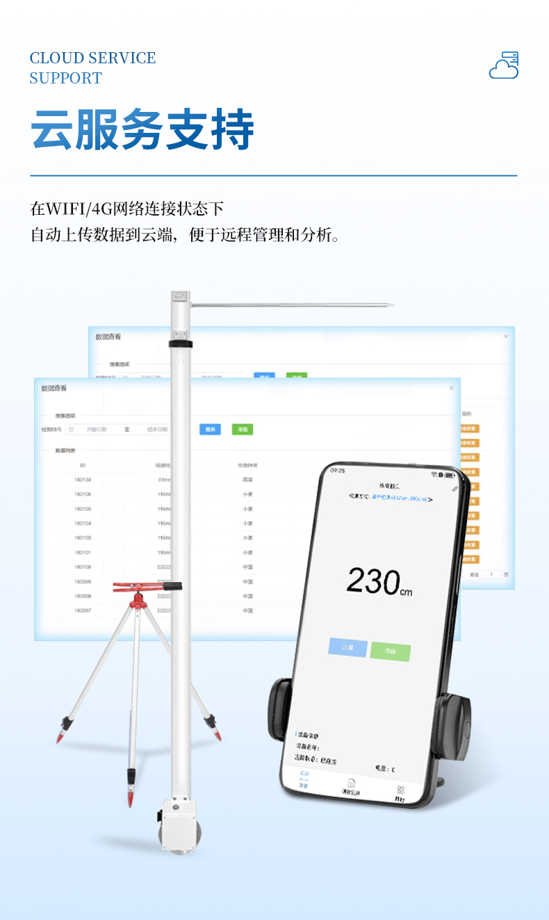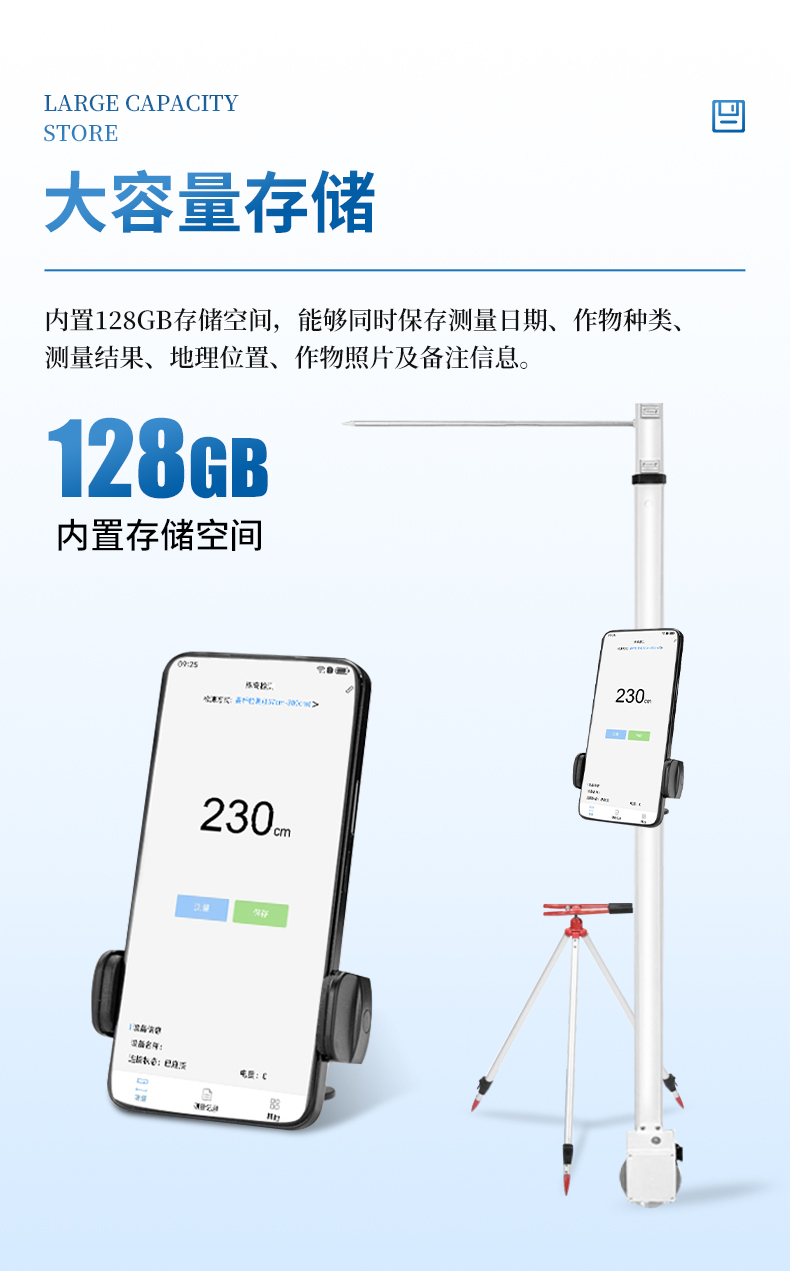10.廣泛應用性 - 最大測量高度可達3米,適用于大多數類型的農作物株高測量需求。
