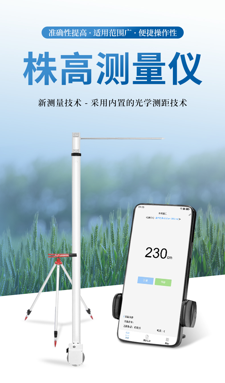 作物株高測量儀是專為農業領域設計的一種便攜式、快速響應的農作物高度測量工具。采用光學測距技術,并通過內置算法進行現場分析,能夠實時獲取作物的高度數據。
