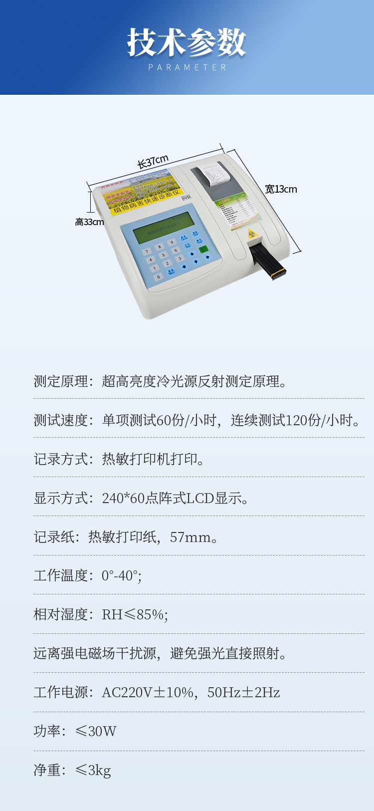 2、測試速度:單項(xiàng)測試60份/小時(shí),連續(xù)測試120份/小時(shí)。