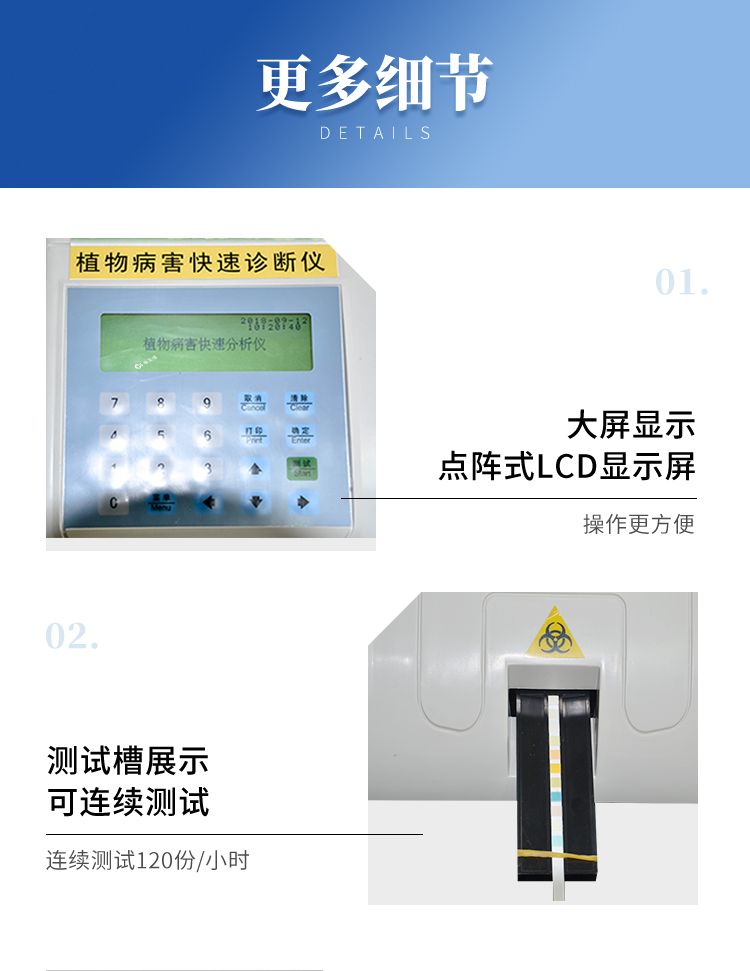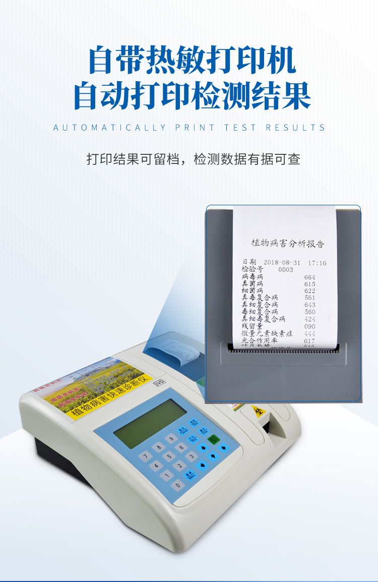 植物病害的檢測是一種復(fù)雜的化學(xué)和物理過程,從實(shí)驗(yàn)室走入實(shí)際應(yīng)用一直是人們追求的目標(biāo),該儀器能夠快速分析確定各種農(nóng)作物病害的種類。為如何防治病害及用藥提供了科學(xué)理論依據(jù),為農(nóng)場主和農(nóng)戶帶來了極大的便利。