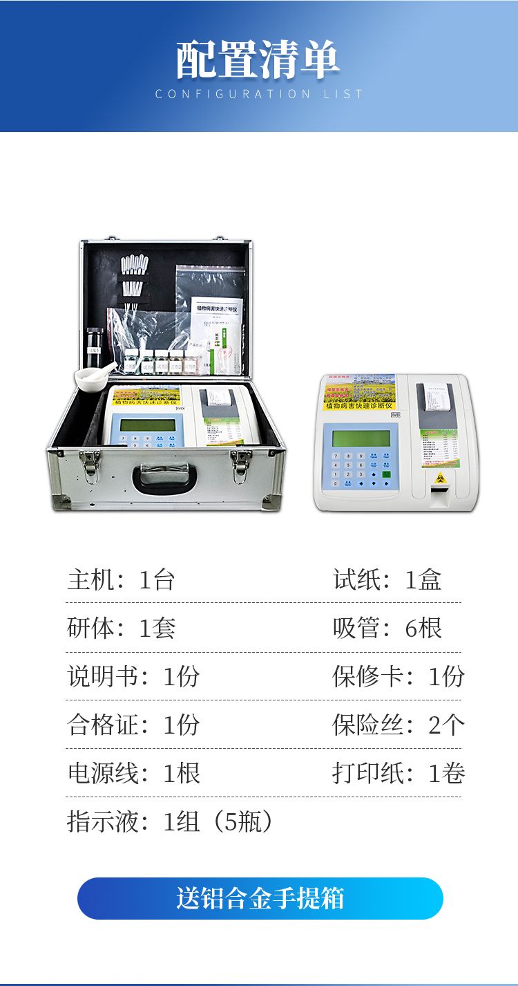 1、主機(jī)一臺(tái) 2、試紙一盒 3、保險(xiǎn)絲2個(gè) 4、電源線一根 5、打印紙一卷 6、指示液五種