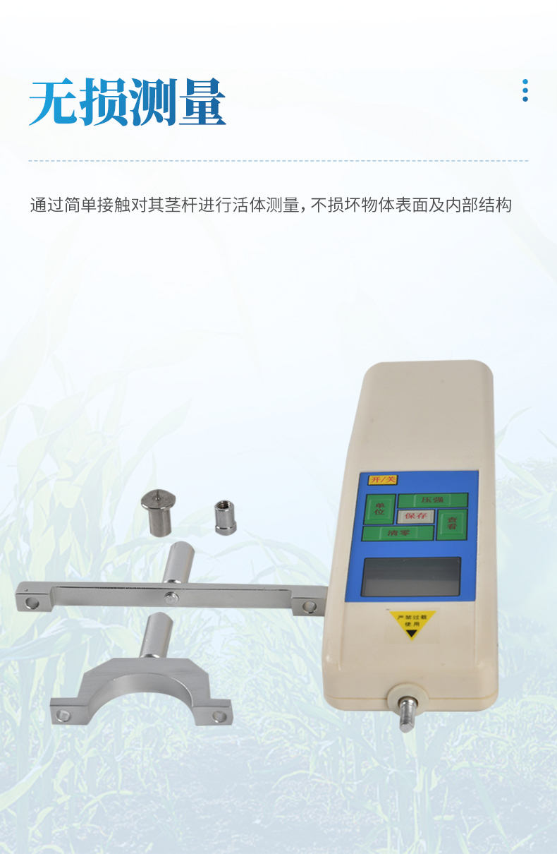 植物抗倒伏測(cè)定儀是決定農(nóng)作物抗倒伏能力的一個(gè)關(guān)鍵因素,玉米,高梁、煙草等的植物的倒伏給農(nóng)作物的機(jī)械收割造成很大的困難。造成大量的浪費(fèi)。另外,農(nóng)作物的倒伏導(dǎo)致光照不充分,使其生產(chǎn)量受到極大的限制。在作物生長(zhǎng)的各個(gè)階段對(duì)其莖桿進(jìn)行活體測(cè)量,進(jìn)而根據(jù)莖桿纖維層的抗彎阻力與抗倒伏能力的相關(guān)性對(duì)群體測(cè)量數(shù)據(jù)進(jìn)行統(tǒng)計(jì)處理,對(duì)作物的栽培和育種具有重要意義。