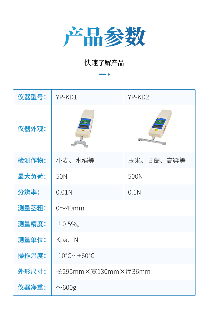 注:KD1型專用于測(cè)量小麥、水稻等.KD2型專用于測(cè)量玉米、甘蔗、高粱等。