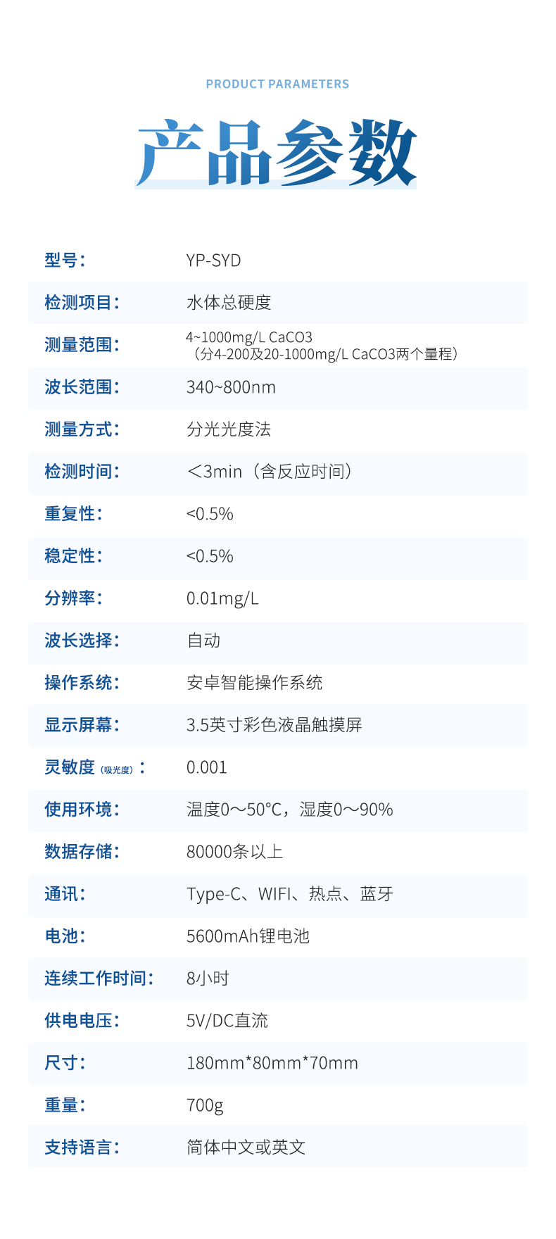 【產(chǎn)品簡介】快速測試水質(zhì)中總硬度濃度值